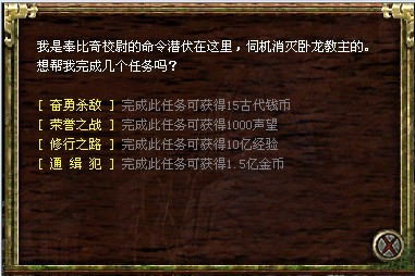 第二,你要有100个卧龙勋章,卧龙勋章完成卧龙潜伏者(卧龙神庙30 32)的任务可以获得。